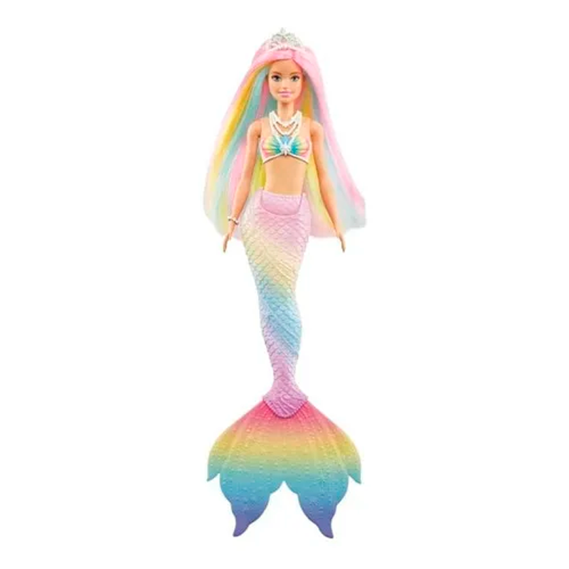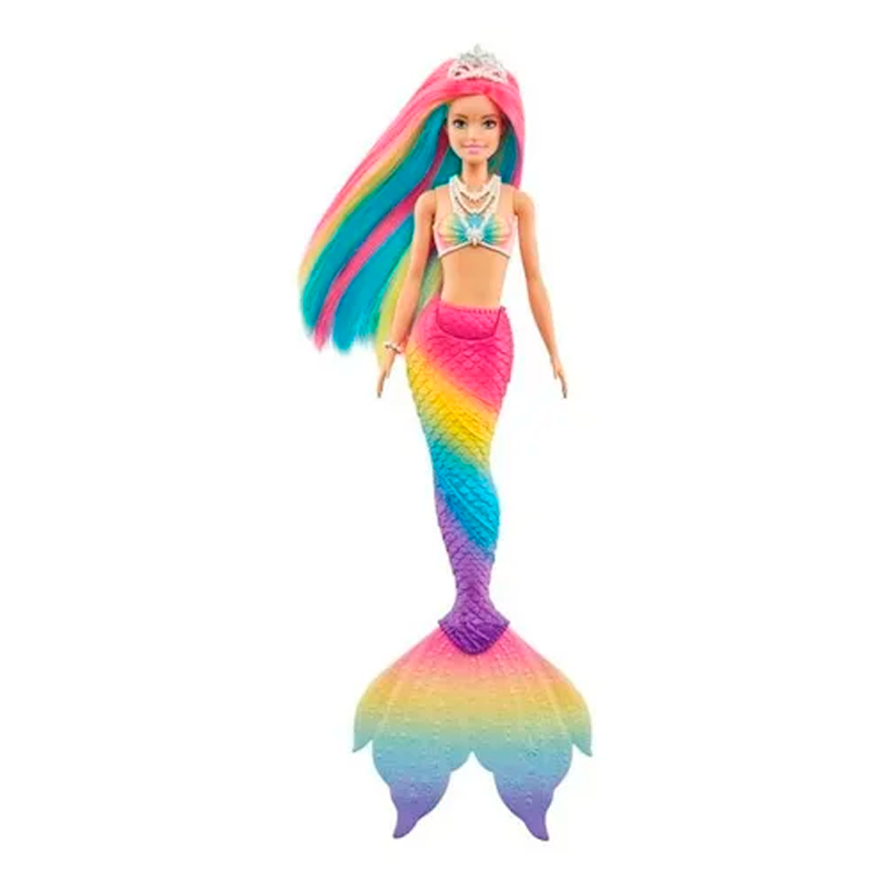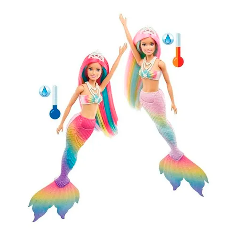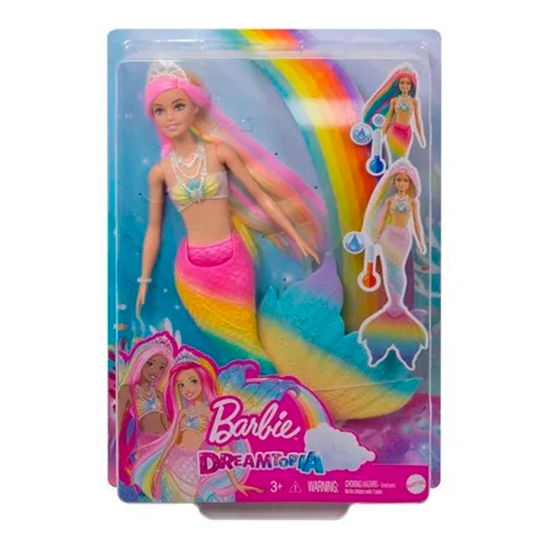 Esta muñeca Sirena Arcoíris Mágico™ de Barbie™ Dreamtopia viene con una transformación de color que hace que la imaginación vuele hasta los cuentos de hadas más coloridos. La muñeca sirena de Barbie® viene con un estilo de fantasía brillante de neón, una tiara en su cabello de arcoíris, una cola animada multicolor y un corsé con detalles inspirados en el mar. ¿Estás lista para la transformación de color? Sumerge a la muñeca Barbie® en agua tibia y observa como su cabello, corsé y cola cambian de color instantáneamente para revelar un arcoíris de colores pastel. Sumérgela en agua fría para ver cómo vuelve a su estilo neón brillante original y revive la transformación una y otra vez. La muñeca no puede nadar ni mantenerse de pie por sí sola. Los colores y las decoraciones pueden variar. SIRENA ARCOÍRIS MÁGICO - Combina la fantástica transformación de color con la hora de jugar con la muñeca Sirena Arcoíris Mágico™ de Barbie™ Dreamtopia. VESTUARIO DE FANTASÍA BRILLANTE - La muñeca sirena de Barbie® viene con un estilo de fantasía brillante de neón, una tiara en su cabello de arcoíris, una cola multicolor y un corsé con detalles inspirados en el mar. REVELA UN ARCOÍRIS - Sumerge a la muñeca Barbie® en agua tibia para ver como su cabello, corsé y cola se trasforman de color instantáneamente para revelar un arcoíris de colores pastel. TRANSFORMACIÓN EN EL AGUA - Sumérgela en agua fría para ver cómo vuelve a su estilo neón brillante original y revive la transformación una y otra vez. PARA AMANTES DE LAS HADAS - Las amantes de las hadas se divertirán en grande con el estilo de la muñeca Barbie® que se transforma y la lleva a vivir las aventuras más encantadas bajo el mar.. Los precios de éste sitio web son exclusivos para compras online y no necesariamente coinciden con los precios en el local.