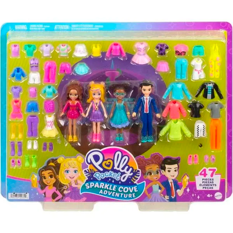 Muñeca Polly Pocket Sparkle Cove Adventure HKW10 Mattel Polly Pocket™ comparte su pasión por la moda en este paquete de moda de Sparkle Cove Adventure™, que cuenta con más de 45 piezas para divertirse combinándolas. Este set de juego incluye cuatro muñecas de 7 cm, las muñecas Polly™ y Shani®, además de dos nuevas amigas de la serie, Gilda Kapoor™ y Jake Tam™. Las niñas pueden cambiar y vestir a las cuatro amigas todo el día con ropa y accesorios de moda que van desde uniformes deportivos, hasta atuendos de fiesta y sus estilos característicos. Vístelas para competencias o celebraciones. Con tantas opciones y un gran potencial de juego, este paquete de moda de Polly™ es un excelente regalo para niñas de 4 años en adelante. Los colores y las decoraciones pueden variar. El paquete de moda de Sparkle Cove Adventure™ de Polly Pocket™ es una aventura de estilo con 4 muñecas y más de 45 piezas de moda adicionales. Las muñecas de 7 cm incluyen a Polly™ y Shani®, además de 2 nuevas amigas inspiradas en la serie, Gilda Kapoor™ y Jake Tam™. Hay infinitas posibilidades para contar historias con prendas que van desde la ropa deportiva hasta atuendos listos para celebrar. Las piezas para cada muñeca añaden elementos de sus estilos característicos. Combínalas con tops, partes inferiores, vestidos, chaquetas de traje, collares e incluso un par de overoles. ¡Adórnalas con zapatillas, botas, tacones o sandalias! La divertidísima combinación de prendas hace que este paquete de moda de Polly™ sea un excelente regalo para niñas de 4 años en adelante, especialmente para aquellas que aman la moda y elegir sus propios atuendos. Incluye 4 muñecas (7 cm) con 4 estilos, 4 pares de zapatos, 1 collar y 1 par de anteojos, más 37 estilos adicionales, 8 pares de zapatos y 1 accesorio.. Los precios de éste sitio web son exclusivos para compras online y no necesariamente coinciden con los precios en el local.