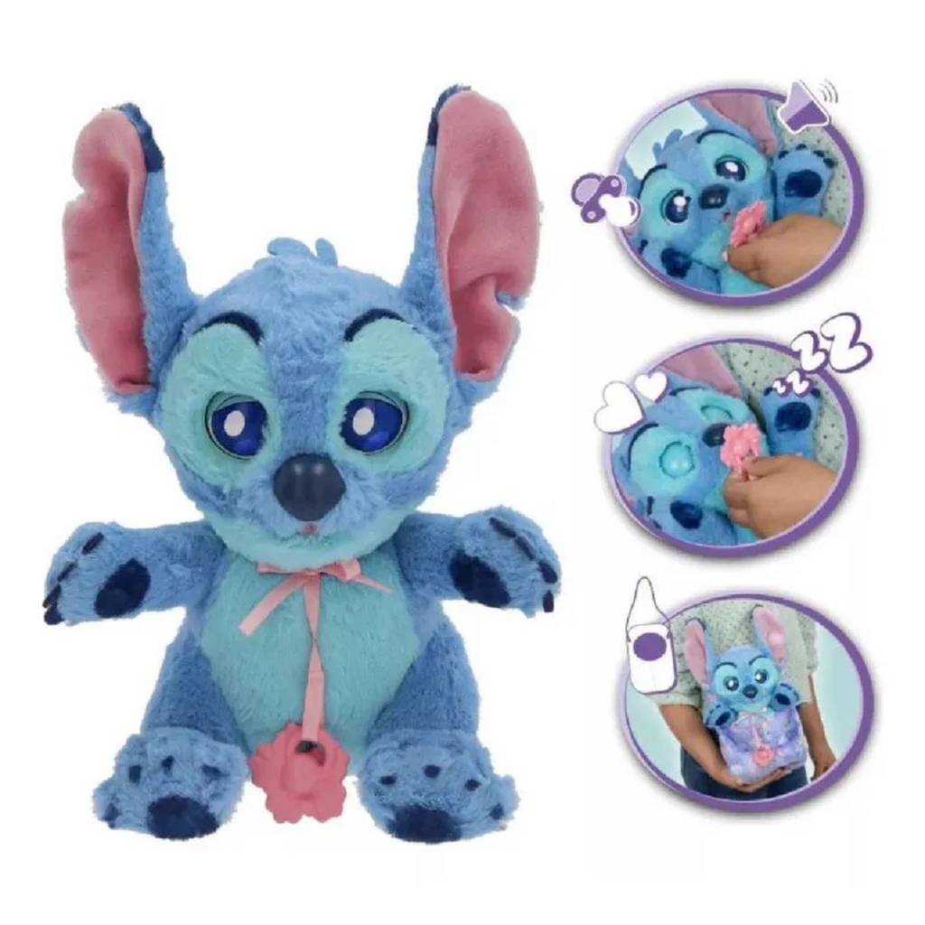Baby Paws Peluche Disney Stitch 24cm 99728 ¡Ha llegado Stitch de las películas de Lilo y Stitch a la familia Baby Paws, es tan mono! Quítale su chupete personalizado y mira cómo abre los ojos por primera vez mientras emite tiernos sonidos de Stitch. ¡Cuando abres su manta, descubrirás su cuerpo suave y esponjoso! ¡Es hora de ir a dormir! Dale a Stitch su chupete y se quedará dormido mientras emite sonidos similares al Stitch original. Incluye su bolsa personalizada, para que puedas llevarlo contigo a todas partes. ¡Baby Paws Stitch es muy mimoso, genial para jugar o dormir con él! Viene con su chupete. Para niños y niñas de 3 años en adelante. Incluye: 1 peluche interactivo, 1 chupete y 1 bolsita. Requiere 2 Pilas AAA (Incluidas para demostración). Los precios de éste sitio web son exclusivos para compras online y no necesariamente coinciden con los precios en el local.